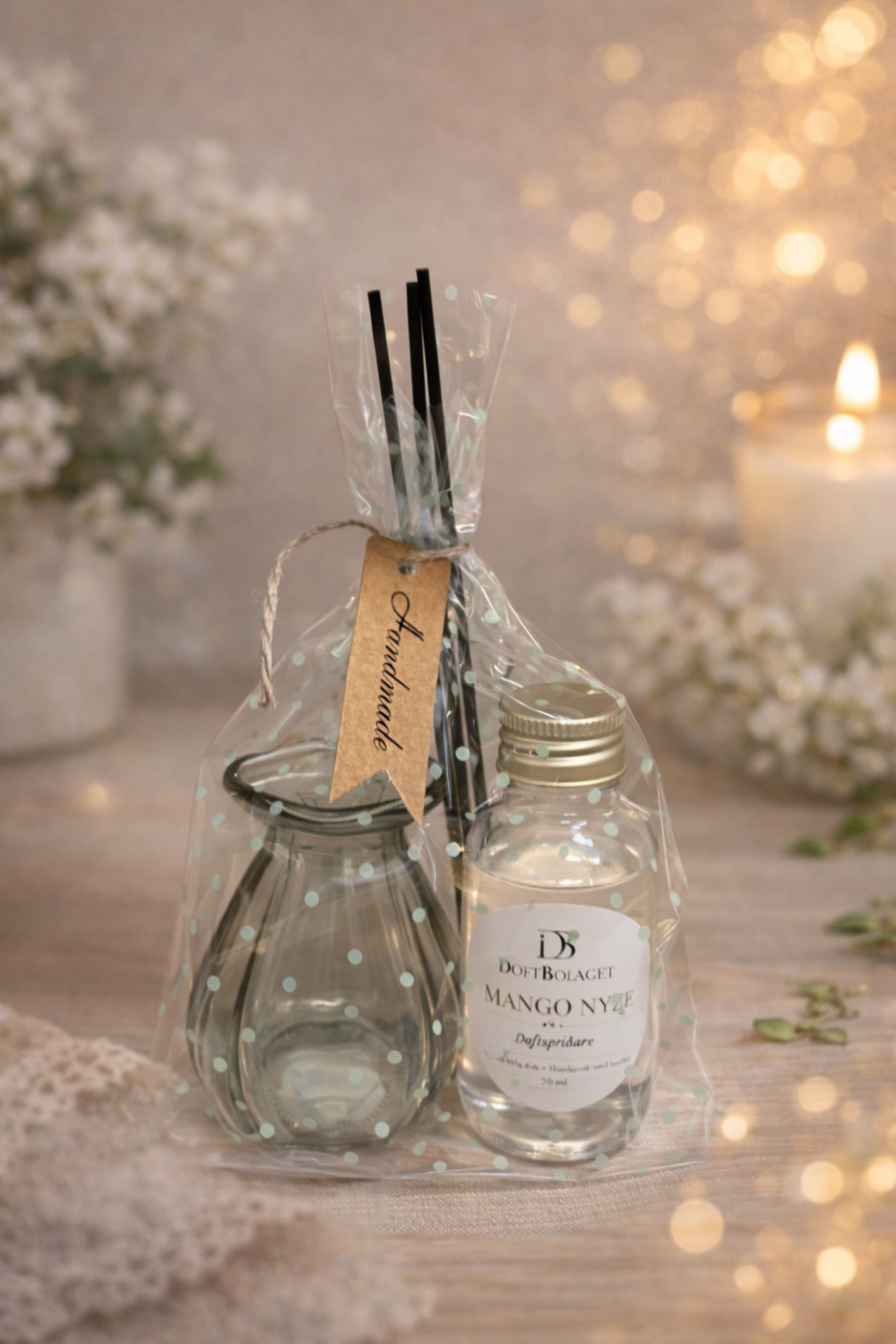 Förvandla ditt hem till en plats av sofistikerad elegans med våra exklusiva doftpinnar i Mango No. 2. En förförisk doftkomposition där solmogen mango möter subtila, mjuka undertoner – en perfekt balans mellan fräschör och värme. Den stilrena glasflaskan tillsammans med eleganta doftpinnar skapar inte bara en ljuvlig doftupplevelse, utan blir även en smakfull inredningsdetalj. Varje detalj är noggrant utvald för att ge en känsla av vardagslyx och harmoni. Den långvariga doften sprids jämnt i rummet och ger en exklusiv atmosfär – perfekt för dig som vill sätta en personlig och lyxig prägel på ditt hem. Levereras vackert inslagen, vilket gör den till en uppskattad gåva vid varje tillfälle. Produktdetaljer:
